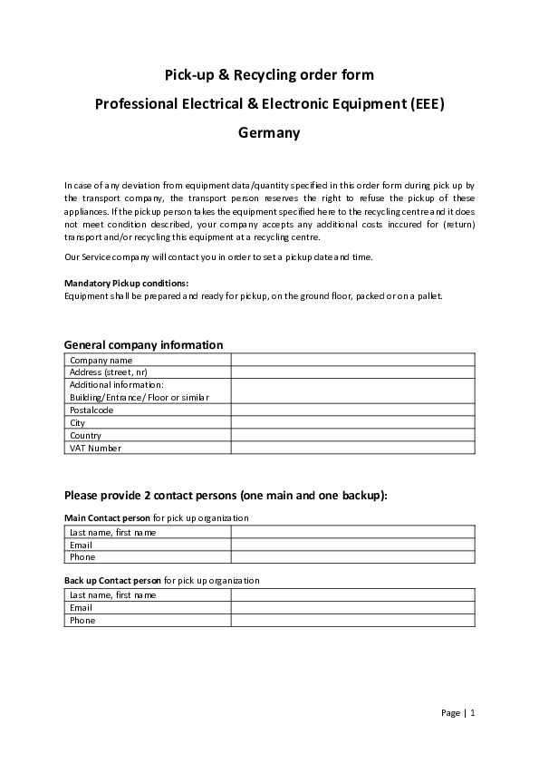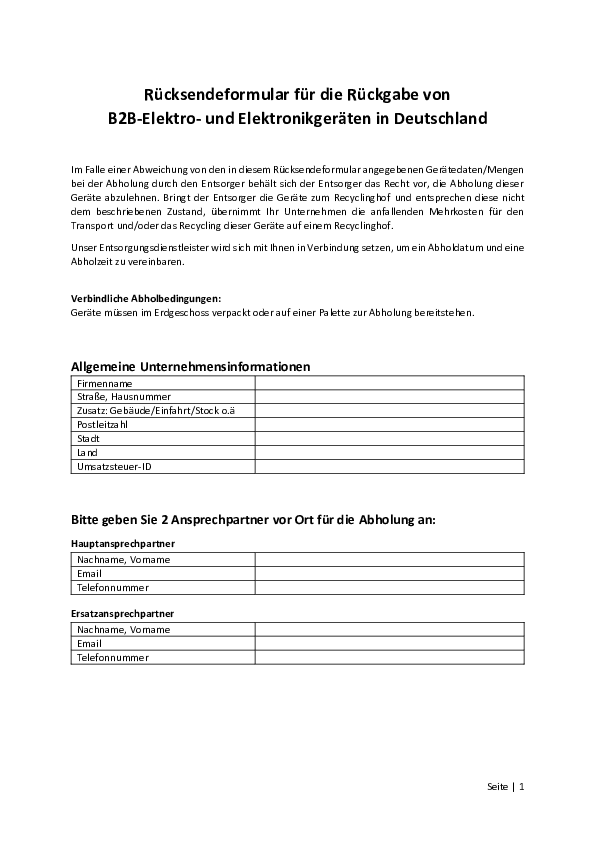 WEEE B2B-Take-Back Form WEEElogic (English)