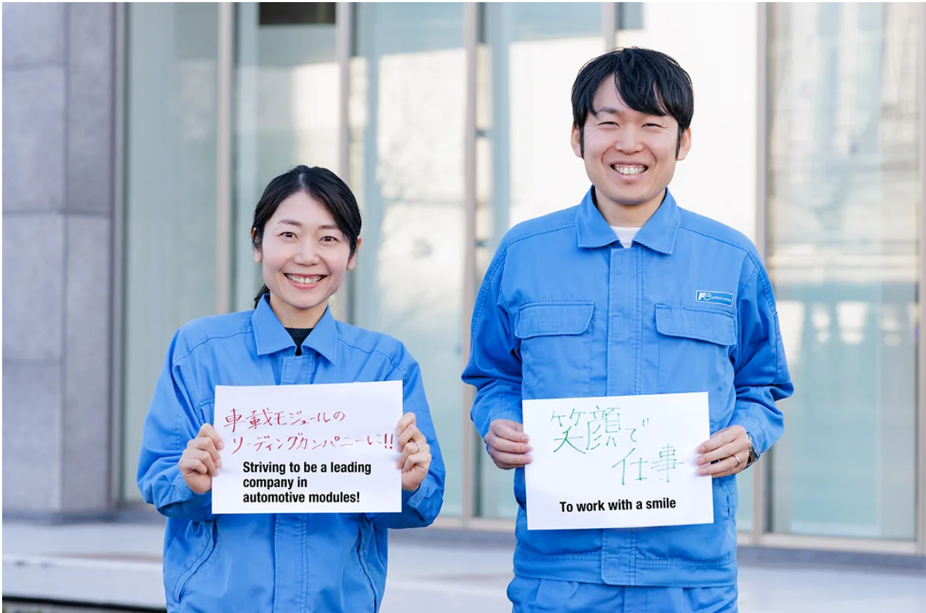 What are your goals going forward? Saito wrote, "To be the leading company of automotive modules!" and Moriya wrote, "To work with a smile".